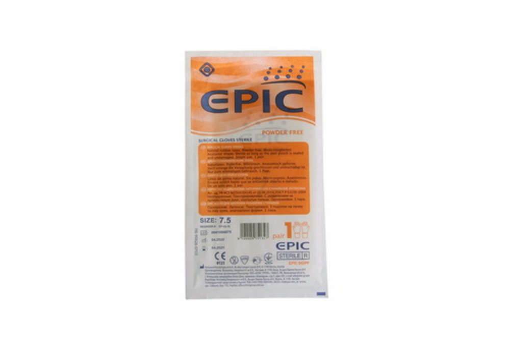 - Перчатки хирургические, стерильные, неопудренные, латексные, 7.5, EPIC
