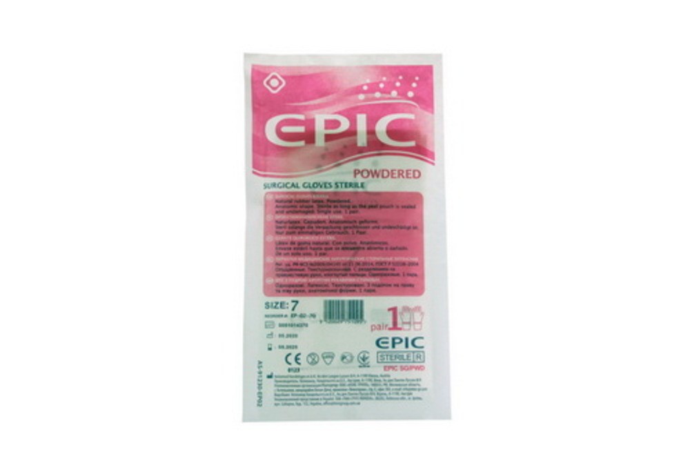 - Перчатки хирургические, стерильные, опудренные, латексные, 7.0, EPIC