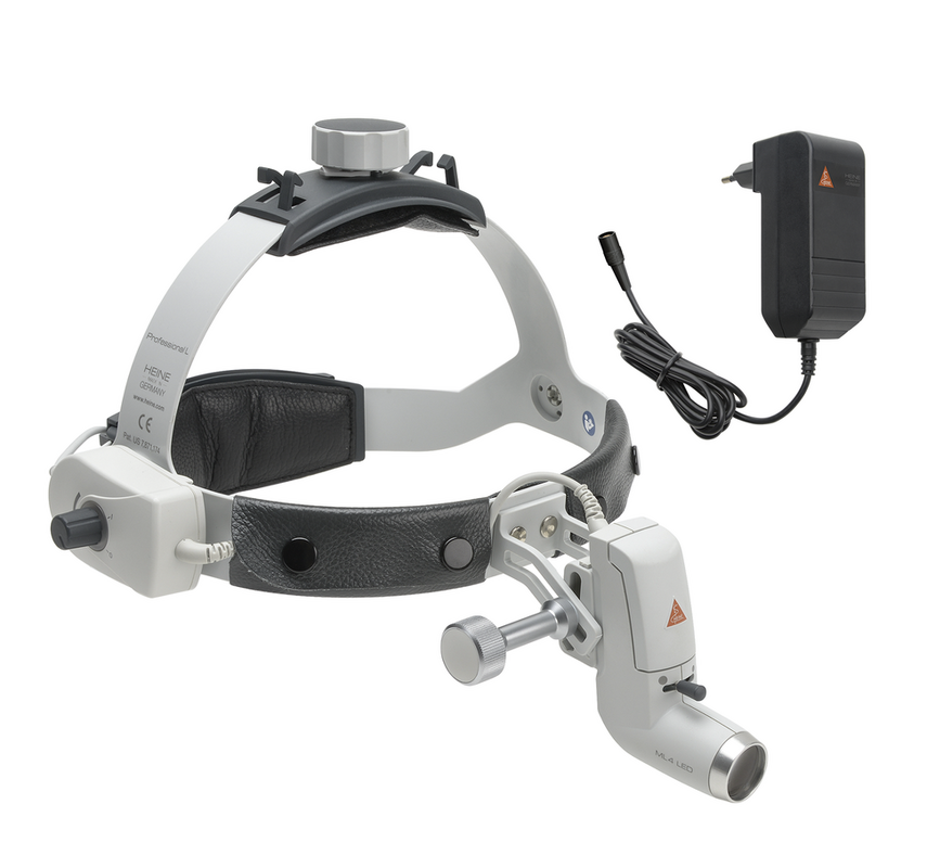 - Осветитель налобный, ML4 LED, набор:осветитель, держатель (шлем), адаптер сетевой, HEINE