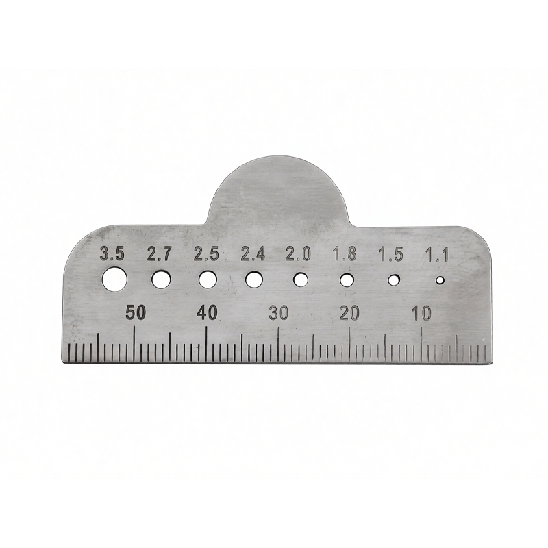 - ✓ Точная шкала: отверстия диаметром 1.1–3.5 мм — соответствуют стандартным размерам имплантов.
