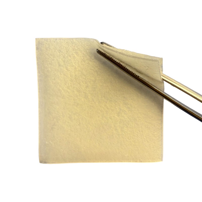 Двухслойная композитная матрица, состоящая из коллагена, активирующего процессы роста и созревания грануляционной ткани, и силикона, защищающего рану от внешнего воздействия и инфекций.