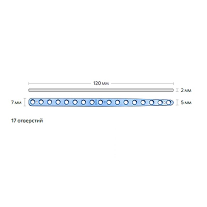 - Пластина прямая, клиновидная, 17 отв, D2.4/2.7мм, 7х2.0х120мм, AXIOS
