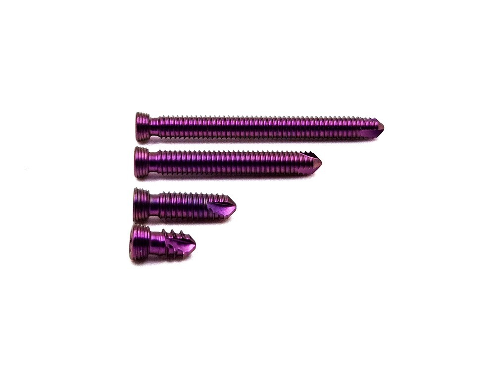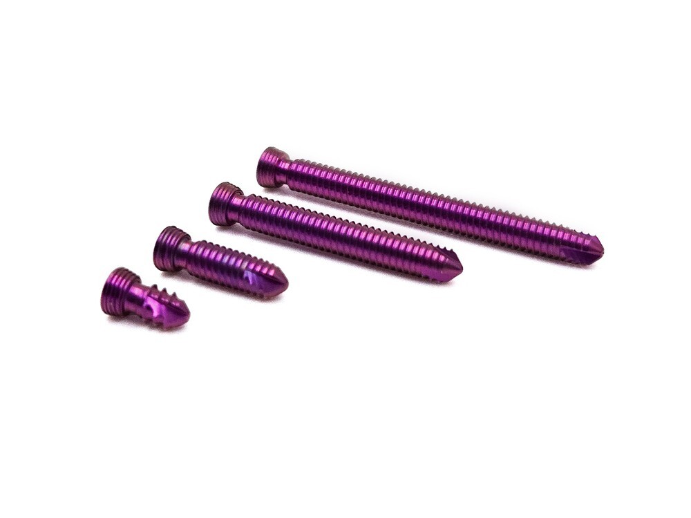- Удобство применения: углубленный шлиц и точные геометрические параметры головки обеспечивают простоту манипуляций во время операции, а цветовая маркировка позволяет быстро идентифицировать размер в операционном поле — снижая риск ошибки.
