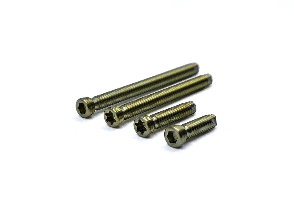 - Удобство применения: углубленный шлиц и точные геометрические параметры головки обеспечивают простоту манипуляций во время операции, а цветовая маркировка позволяет быстро идентифицировать размер в операционном поле — снижая риск ошибки.
